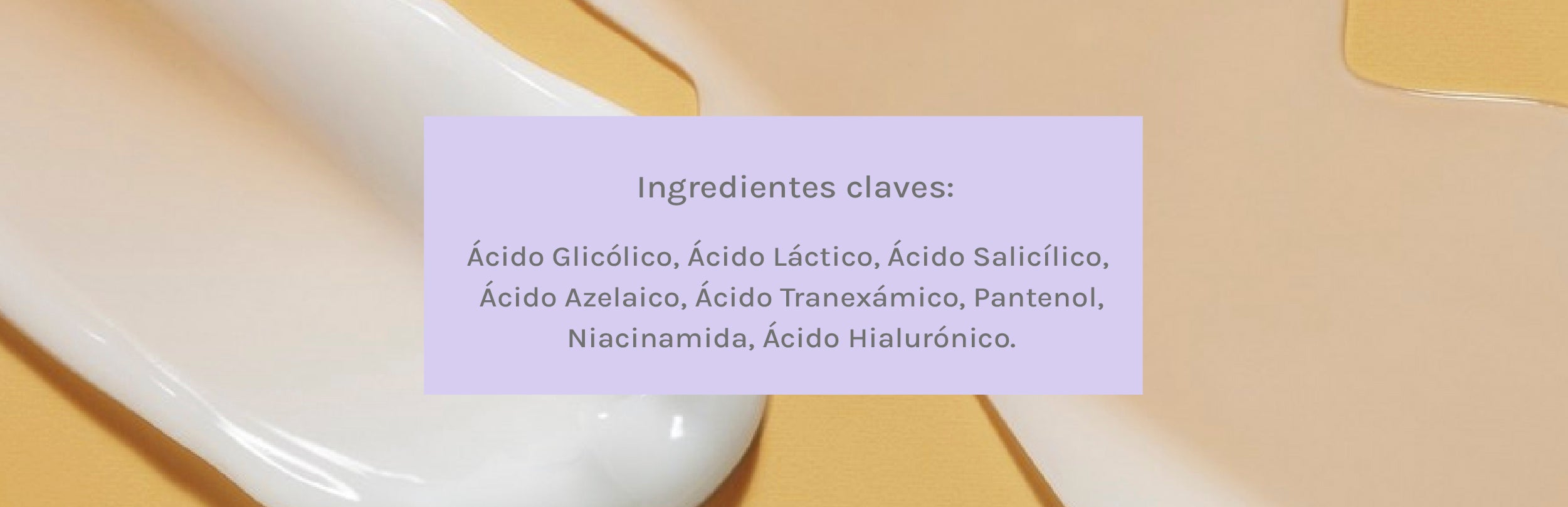 Ácido Láctico: Exfolia las células muertas, lo que refina la textura del rostro, aporta luminosidad y combate la hiperpigmentación. Estimula la producción de colágeno, dando como resultado más firmeza, elasticidad, poros cerrados y reducción de aparición de líneas finas.